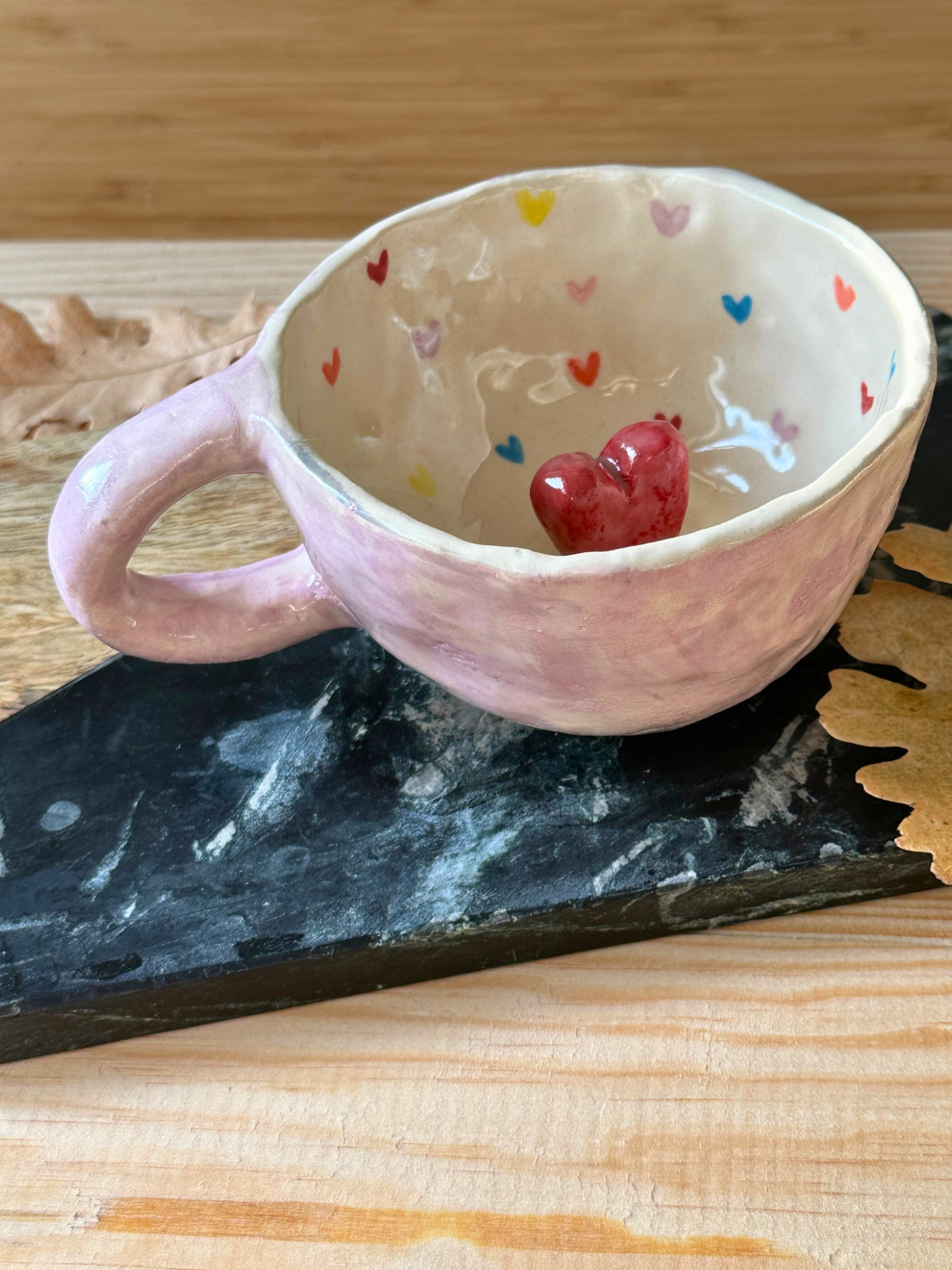 Πήλινη κούπα με 3D στοιχεία, φτιαγμένη με αγάπη από το Abstract Studio.